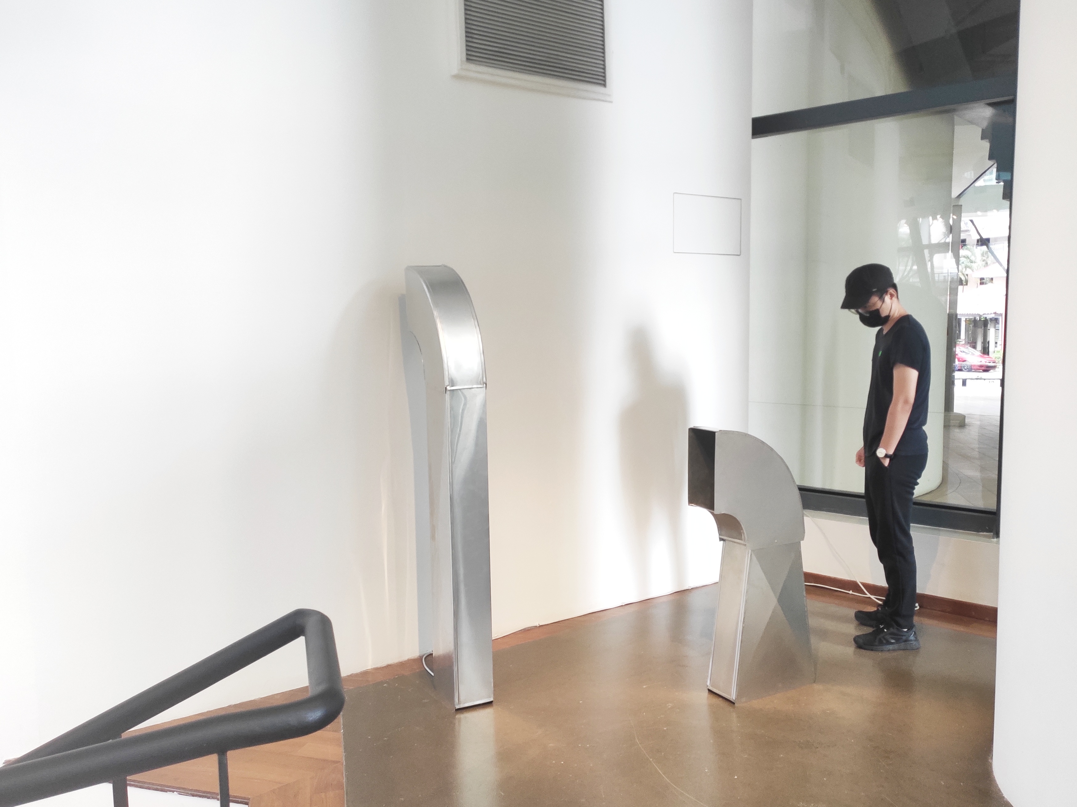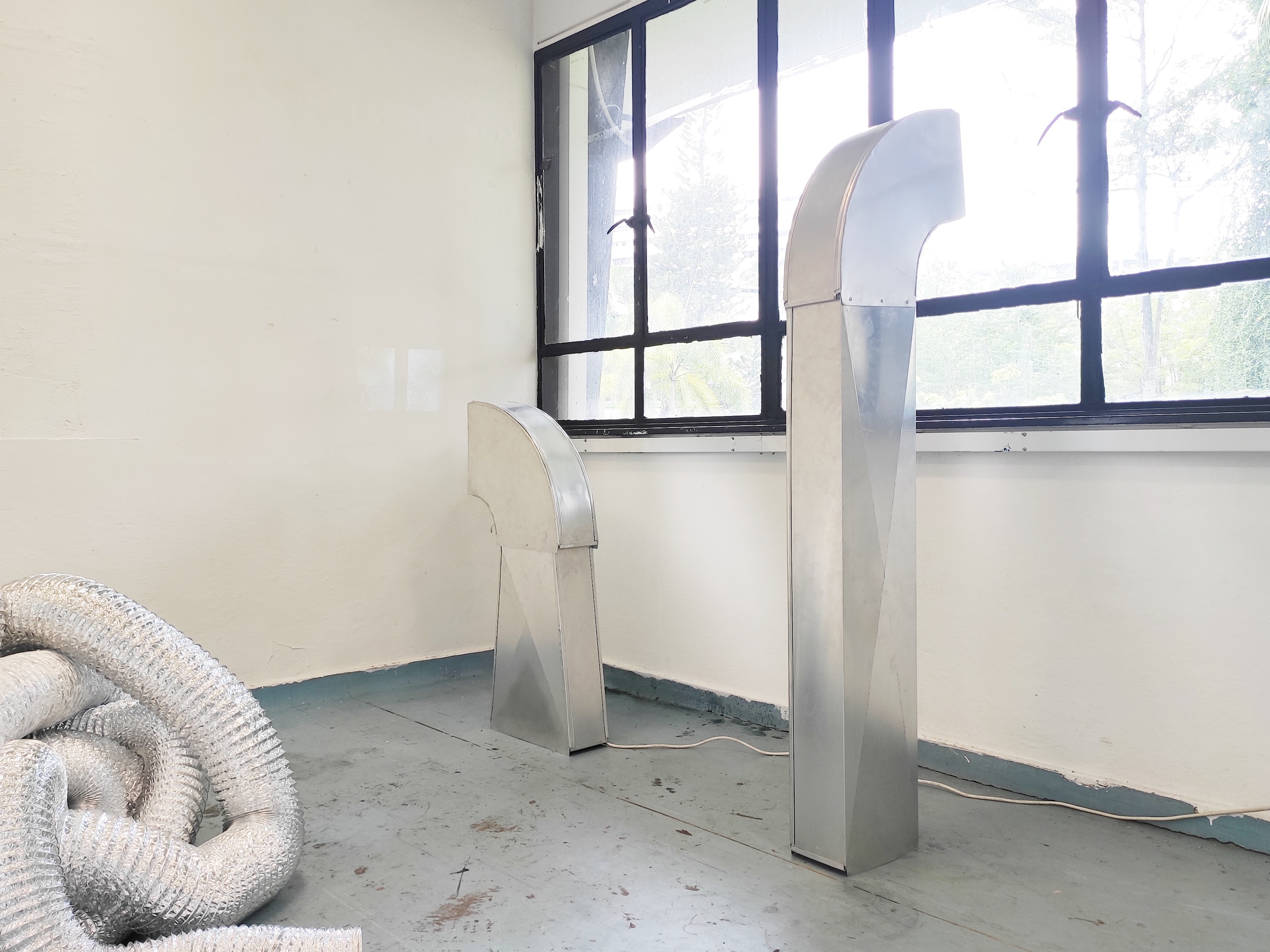 I am interested in how the human body internalises the external influences of the material world and social systems humans live in, especially that of the working environment. As Singapore shifts into a post-industrial era, the way people work, and the relationship between mankind and nature changes. The modern machine no longer stands for a miracle of automation but is now a symbol of a larger biological power that invisibly takes control of our work and lives.Post-industrial Bodies uses objects from the central air-conditioning system – one of the most symbolic machines in postindustrial Singapore – as a medium. This work attempt to examine how the human body tries to meet the needs of society, rather than its own functionality. This serves as a metaphor of the reciprocal assimilative relationship between our bodies and the material world around us.