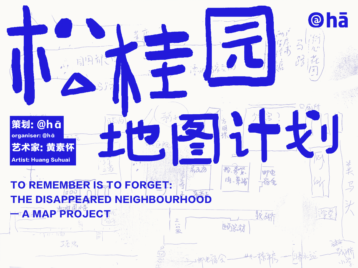 《松桂园 – 地图计划》是@hā艺术空间与艺术家黄素怀共同发起的一个探讨城市记忆的展览计划,以手画地图为媒介,探寻在轰轰烈烈的城市改造后不可磨灭的“家园”记忆。是什么塑造了我们今天的城市生活?什么过往值得追溯?又有什么会必然被忘却?《松桂园 – 地图计划》关于城市,也探讨记忆。关注城市巨变及人们生活的改弦易辙,探索地图作为记忆载体所展示的诗意与隐喻。