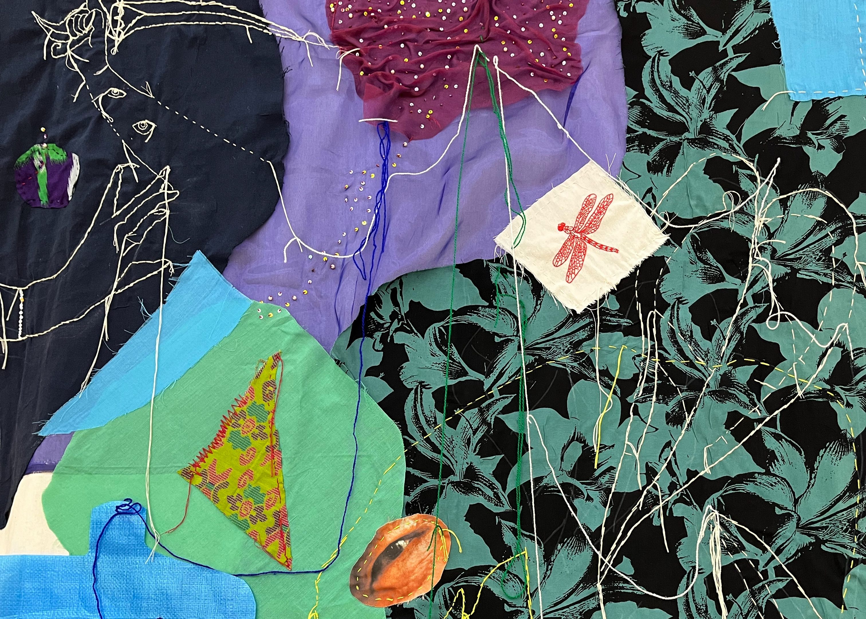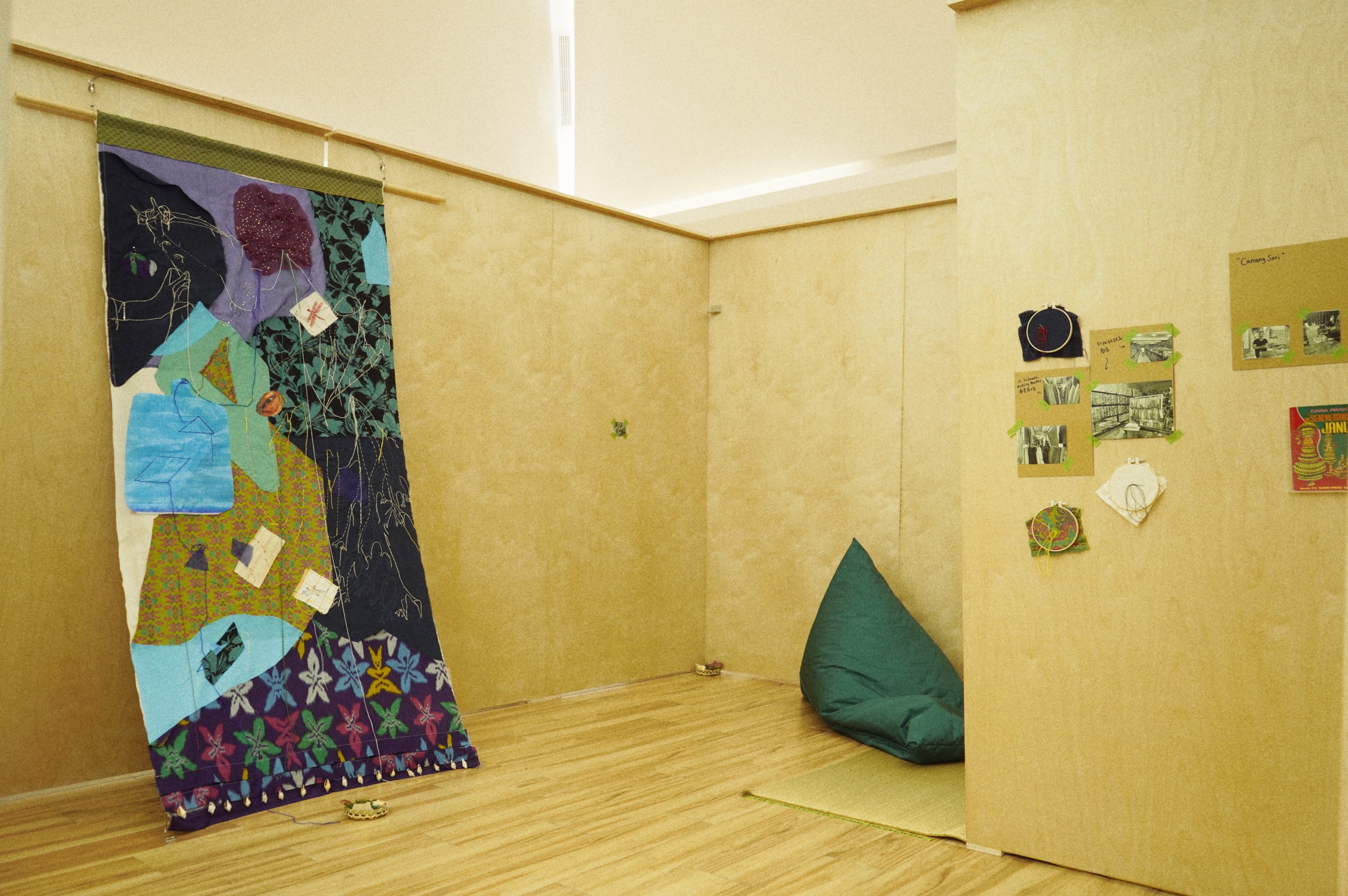 Tirta began with artist Huang Suhuai’s residency project in Bali, featuring a mixed-media textile work, process journal, and research archive. Centered around the theme of water, the artist drew profound inspiration from the island’s rich narratives of religious tales, way of life, daily struggles, and aesthetic experiences. Through sewing and embroidery, the artist weaves the narrative of the island’s waters into her work, envisioning how this vital element, embodying the complexities of everything, flows through the tapestry of our lives.
