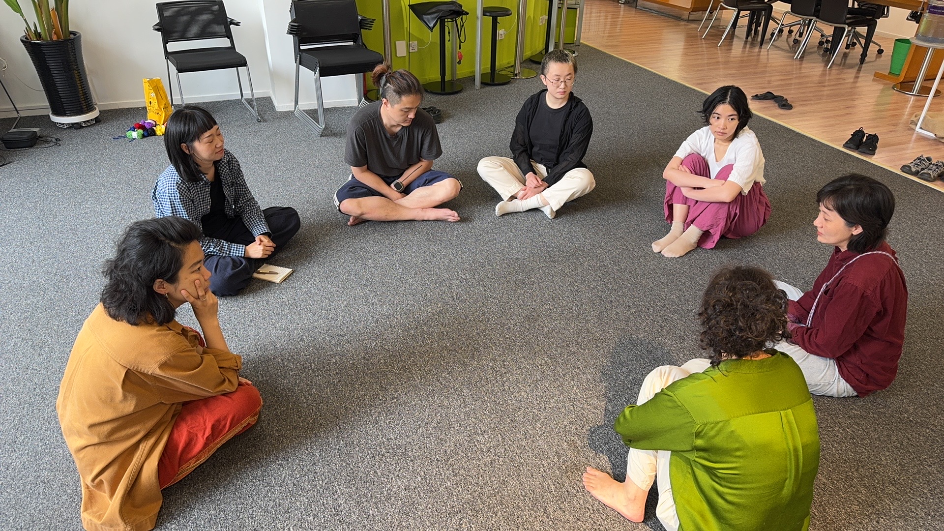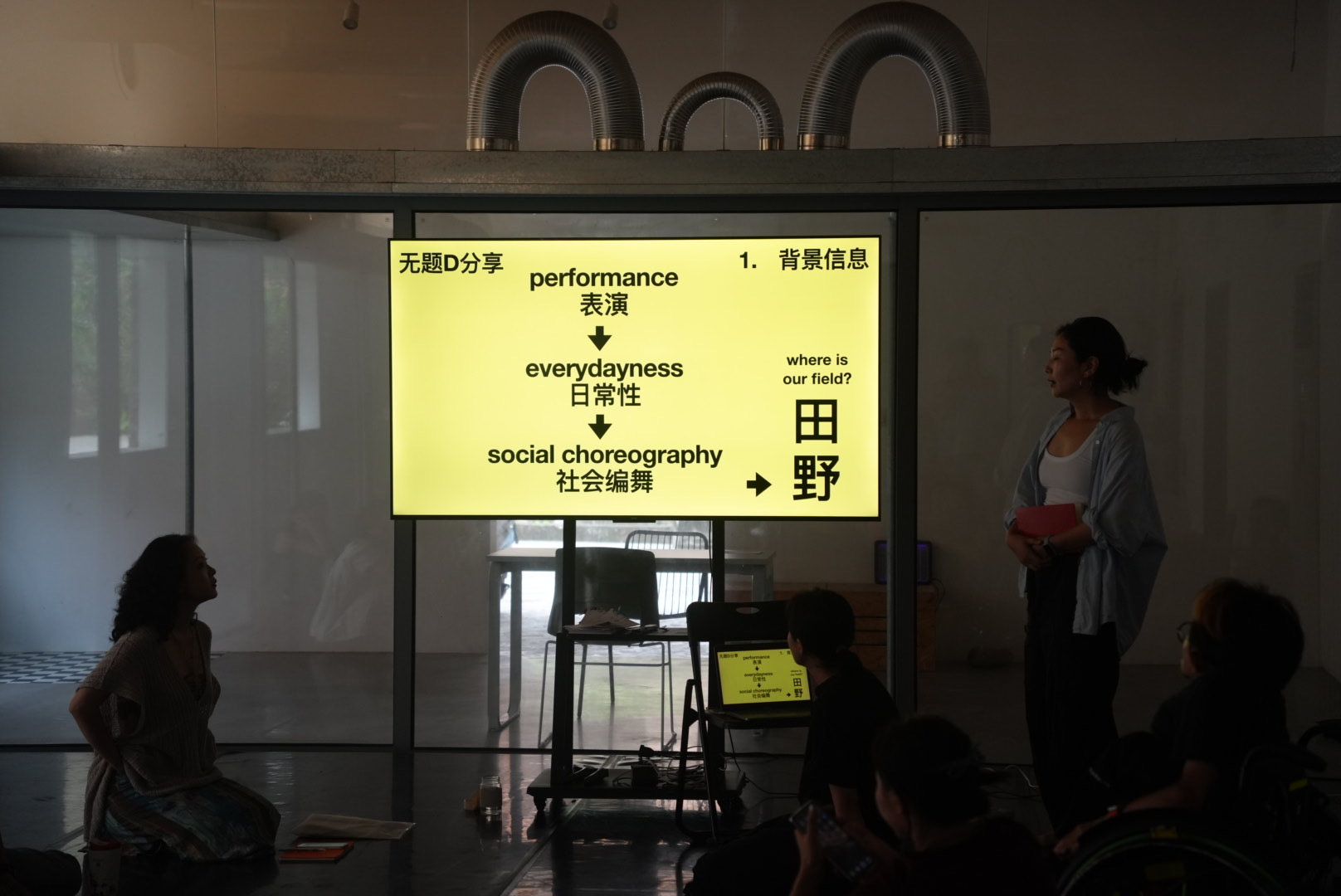 Multi D working group (無題D實踐所) is a collective formed by Huang Suhuai, Liu Xiao, and Wang Yunke, artists and researchers working at the intersection of visual arts, performance, dance, and theatre. In 2024, they launched the Notakinesis Project—an ongoing exploration of cross- media performance developed through workshops, residencies, and experimental showcases.