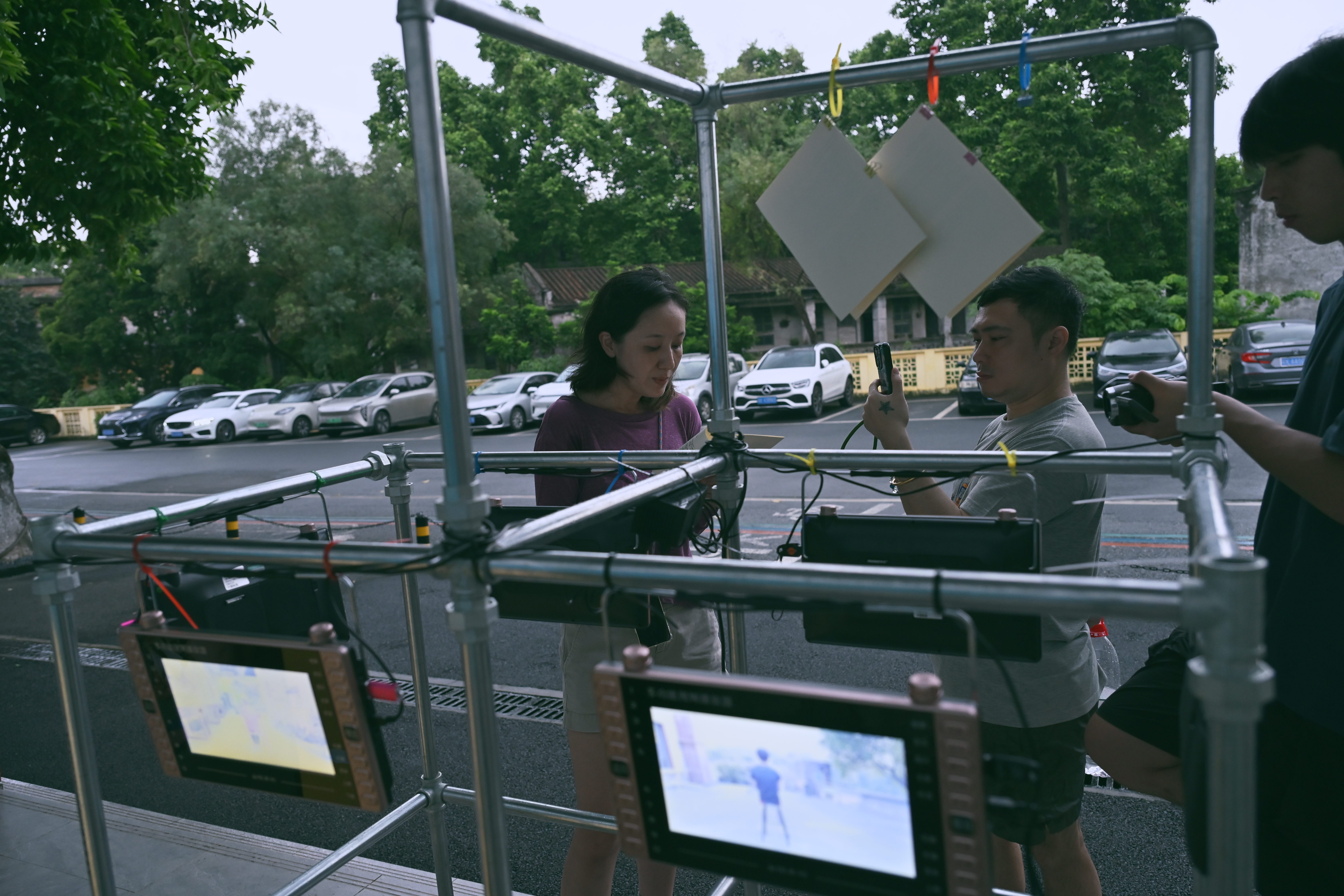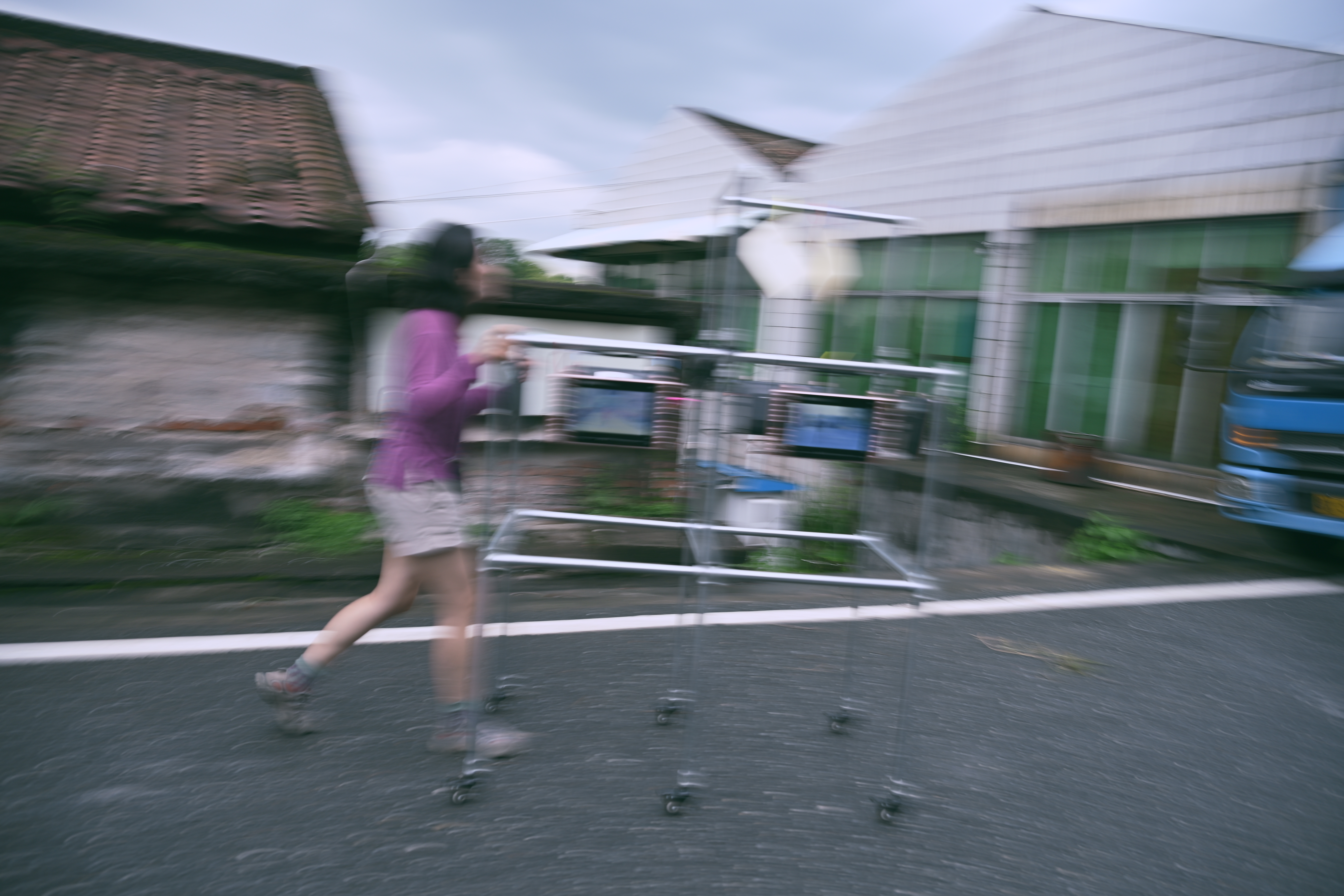 Village of Time was completed in Zuotan Village, Shunde. The project evolved into a community art initiative, assembled into a mobile mixedmedia installation. Suhuai invited six villagers she met in Zuotan, each to take her to a place of personal significance and memory. Together, they sat down and quietly observed the scenery for ten minutes. The recorded footage, along with transcripts of the villagers’ interviews, was crafted into a mobile video installation on wheels, which was later taken to various corners of the village for an evening screening. The work explores the concept of time and its relationship with rural life. Suhuai established a practice rooted in local engagement, community intervention, and emotional connection with individuals.